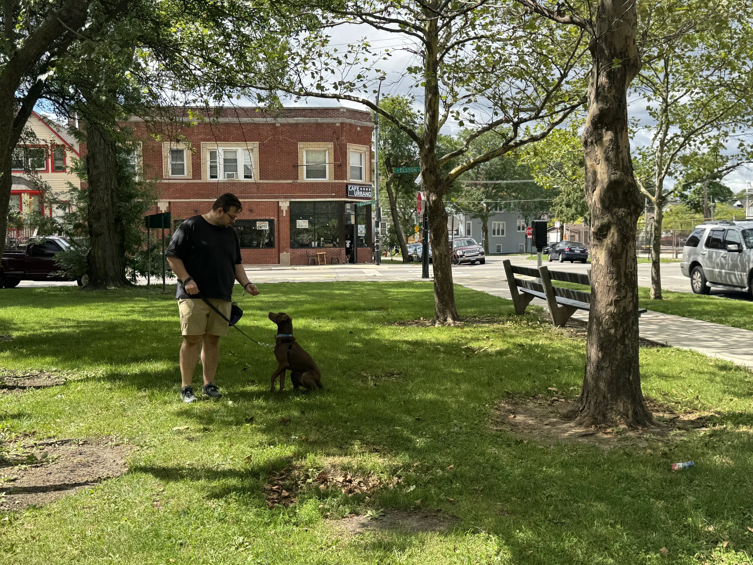 Highly social dogs often react with big energy when they see people or other dogs, especially in busy Chicago settings.